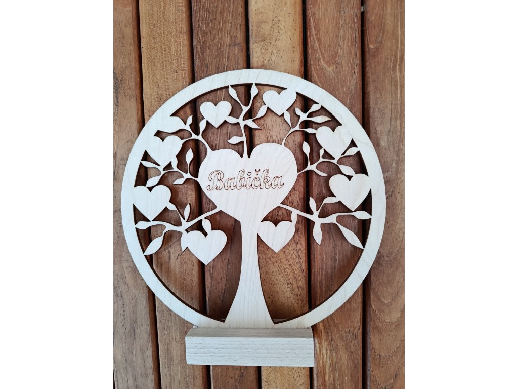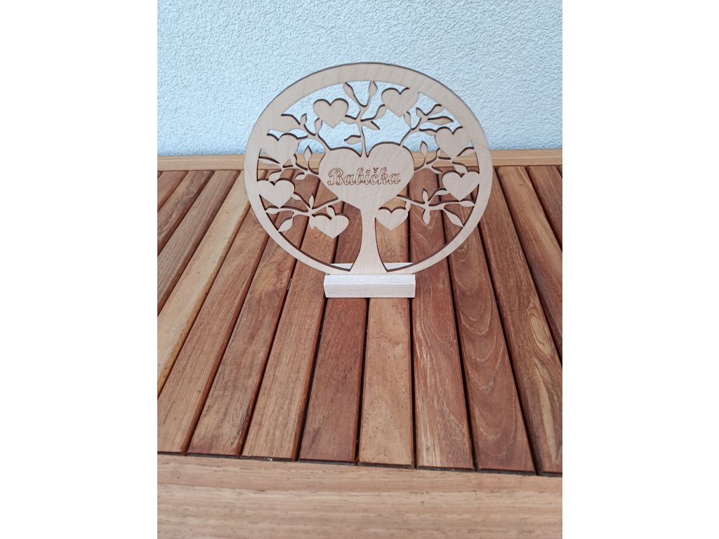 Malý dřevěný strom života s nápisem "Babička", milý dárek pro naše milované a zlaté babičky jistě vykouzlí krásný úsměv a zahřeje na srdci. Strom života má malý dřevěný stojánek, takže ho můžete kamkoliv postavit. Darovat můžete ke svátku, k narozeninám, na Den Matek, ale i o Vánocích, příležitostí k obdarování našich drahých babiček je jistě spousta.