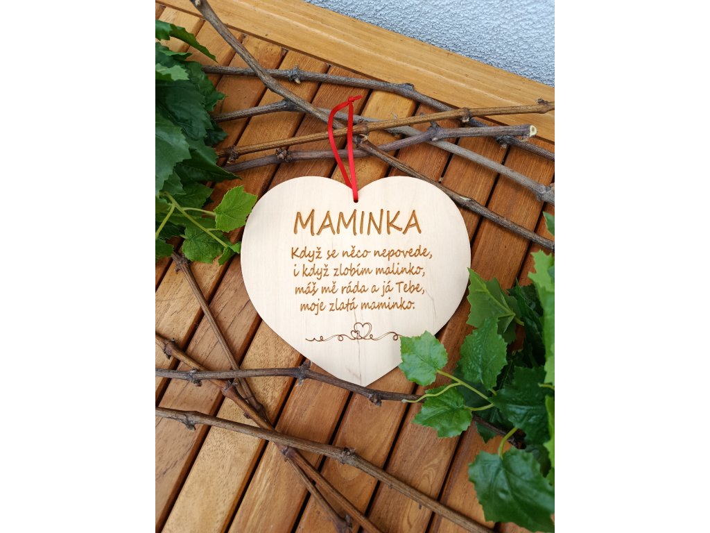 Dřevěné srdíčko s krásným textem, milý dárek pro naše milované a zlaté maminky jistě vykouzlí krásný úsměv a zahřeje na srdci. Srdíčko s textem pro maminky můžete darovat ke svátku, k narozeninám, na Den Matek, ale i o Vánocích, příležitostí k obdarování našich drahých maminek je jistě spousta.