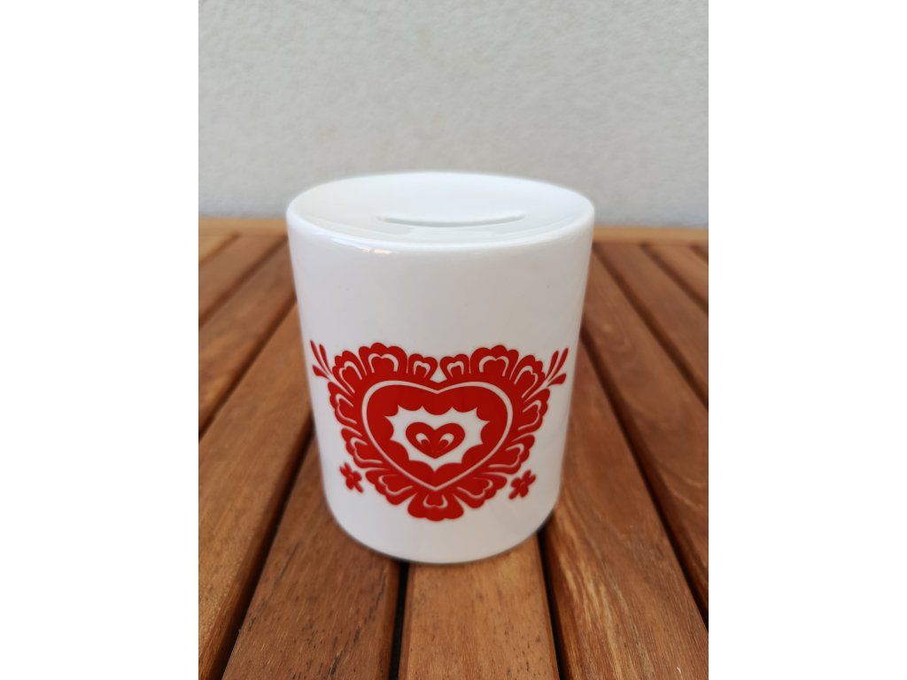 Keramická pokladnička s folklórním motivem srdce v červené barvě. Vybírat můžete i z dalších 5 ti designových variant.