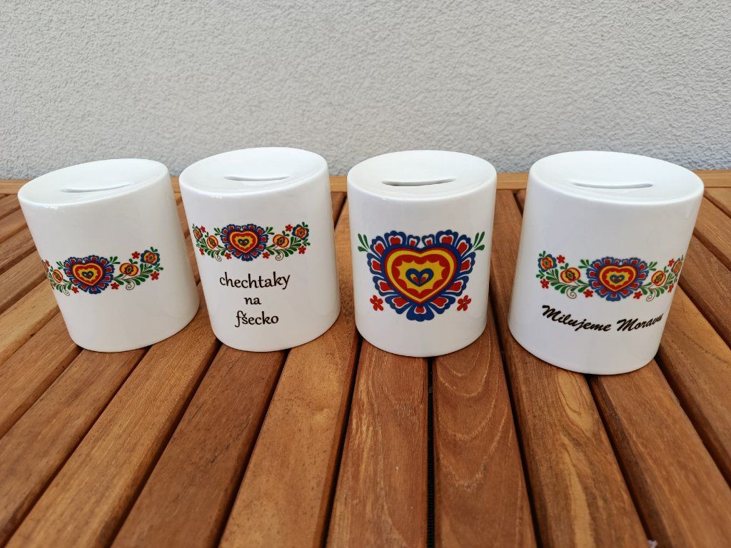 Potisk na pokladničky je vyroben v naší dílně. Rádi Vám vyrobíme potisk na hrnek nebo pokladničku dle vašeho zadání, s vaším originálním obrázkem nebo nápisem.