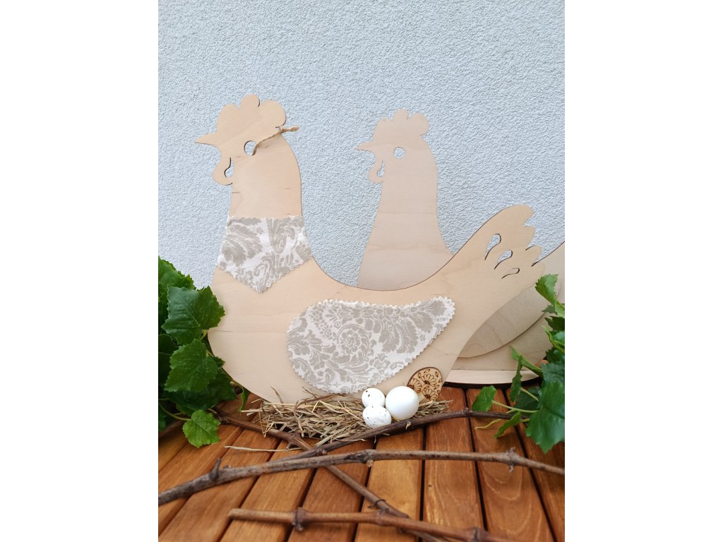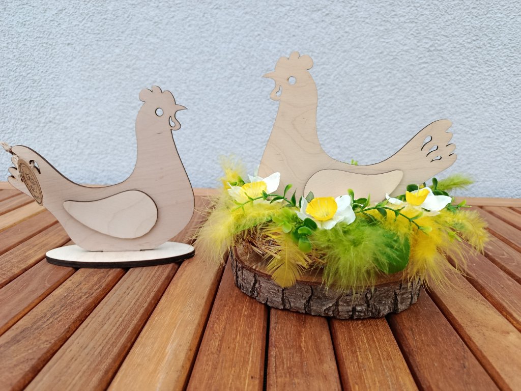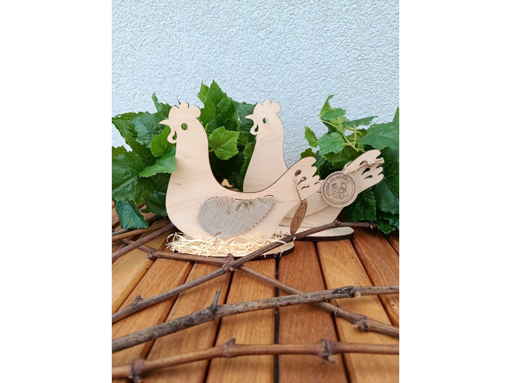 Tato roztomilá dřevěná slepička přinese do vašeho domova kouzlo jara! Z přírodního dřeva, stojící pevně na podstavci a krásně doladí vaši velikonoční výzdobu, skvěle se hodí i do moderního interiéru.
