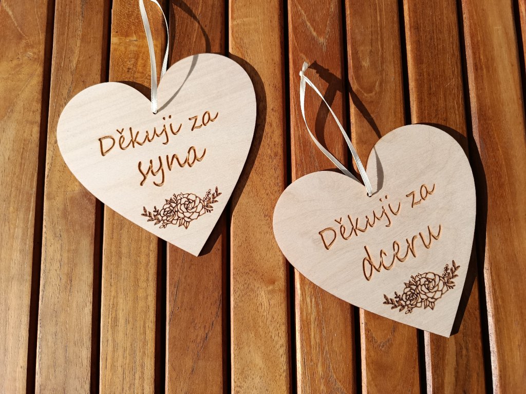 Děkovné svatební srdíčko za dceru a za syna. Krásný a dojemný dárek, který bude jistě připomínat dojemné, ale krásné svatební chvíle.