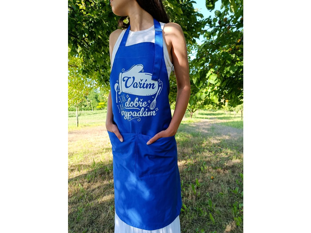 Zástěra kuchyňská modrá “Vařím tak dobře jak vypadám”